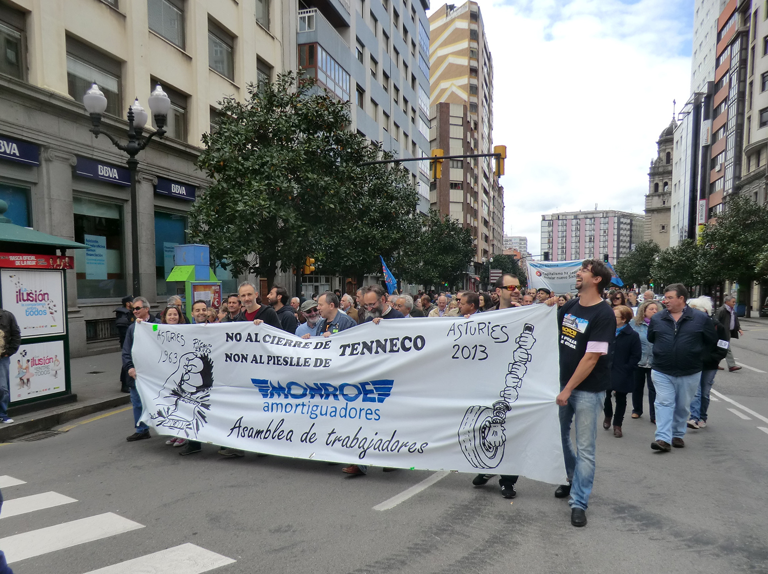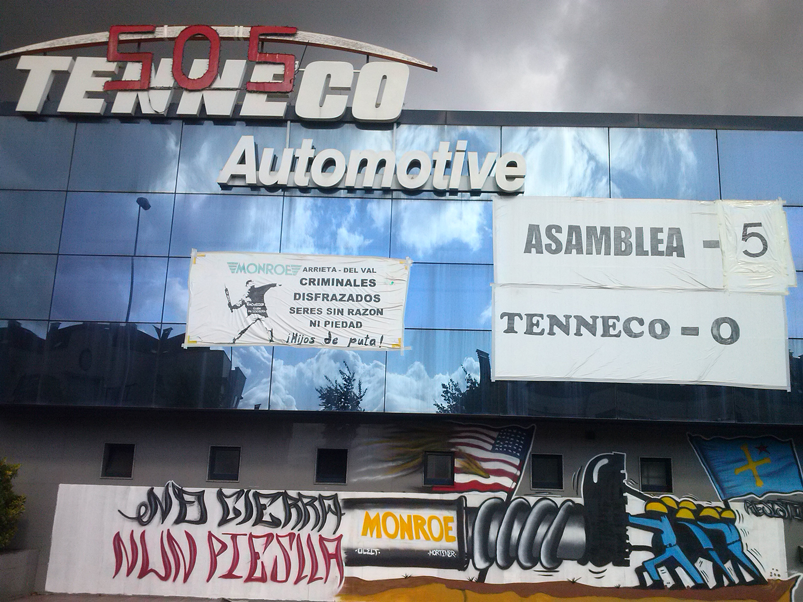 En septiembre de 2013, la multinacional estadounidense Tenneco comunicó a los trabajadores el cierre de su planta de Gijón, dedicada a la fabricación de amortiguadores de marca Monroe. A partir de ese momento, la plantilla planteó una negativa tajante al cierre y a la destrucción de empleo. Entre diciembre de 2013 y agosto de 2014 la fábrica, ya cerrada, permaneció ocupada por los trabajadores, que finalmente consiguieron su reapertura. El conflicto discurrió sobre la base de una práctica asamblearia en la que las siglas de los cuatro sindicatos con presencia en el comité de empresa (CSI, CCOO, USO y UGT) fueron relegadas a segundo plano y las decisiones fueron siempre refrendadas por el conjunto de los trabajadores. Una vez reabierta, la planta ha sido vendida a una nueva firma y sigue funcionando en la actualidad.