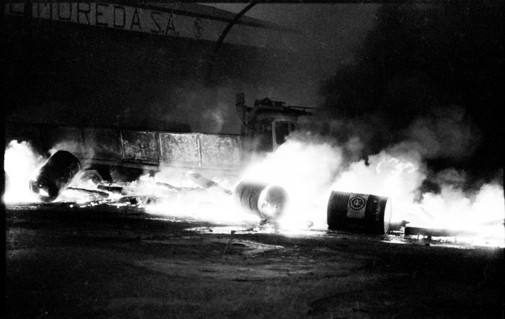 Y es que, aunque la casi rutinaria repetición de la colocación de barricadas de neumáticos para su posterior incendio, que en algunas épocas y lugares fue rutinaria con todas las letras; nos pueda llevar a pensar que esta acción forma parte del repertorio de acción colectiva de la clase trabajadora desde tiempos indeterminados, desde siempre, la realidad es otra. Gran parte de la población actual de Asturias tuvo en su día la oportunidad de quedarse enormemente sorprendida con la quema de una barricada de neumáticos. Aunque forma parte de nuestra memoria social y visual desde siempre y aunque la tengamos plenamente integrada como repertorio natural de acción y presión en los conflictivos laborales, este recurso no es tan viejo.