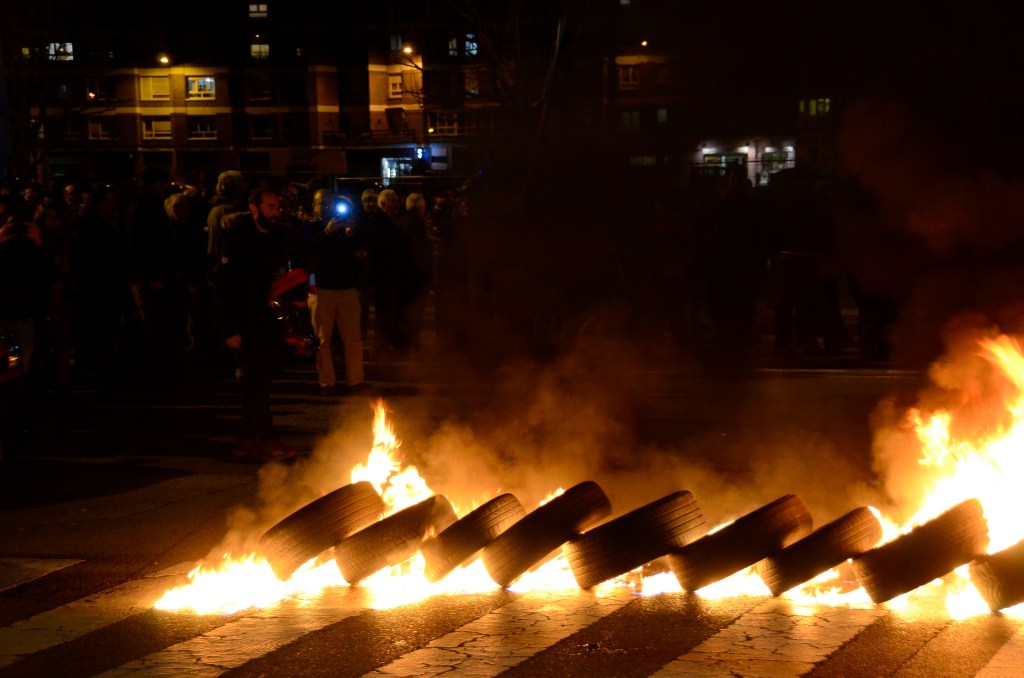 Al empezar a reflexionar sobre este texto hice una pequeña (y nada rigurosa) cata en un entorno más o menos amplio. Preguntaba desde cuándo creían que se quemaban neumáticos en las movilizaciones obreras. La primera reacción a la pregunta era el desconcierto. Quemar neumáticos es una acción tan asumida en nuestro entorno que nadie se para a pensar cuándo comenzó a ser utilizada como herramienta de protesta. Salvando las distancias, vendría a ser lo mismo que preguntar por cuándo comenzaron a utilizarse los tenedores. Rara vez alguien reflexiona sobre ello, se usan desde siempre y con eso basta.